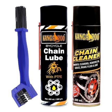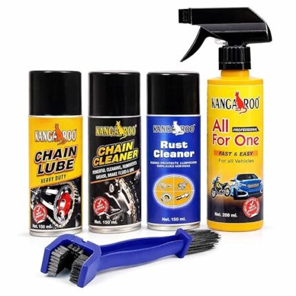 Kangaroo Bike Care Kit (Chain Lube And Cleaner Rust Remover And Bike Polish Full Care Kit 150 Ml Each Lubricant With Cleaning Brush And 200 Ml Polish (650 Ml Pack Bike Care Kit)