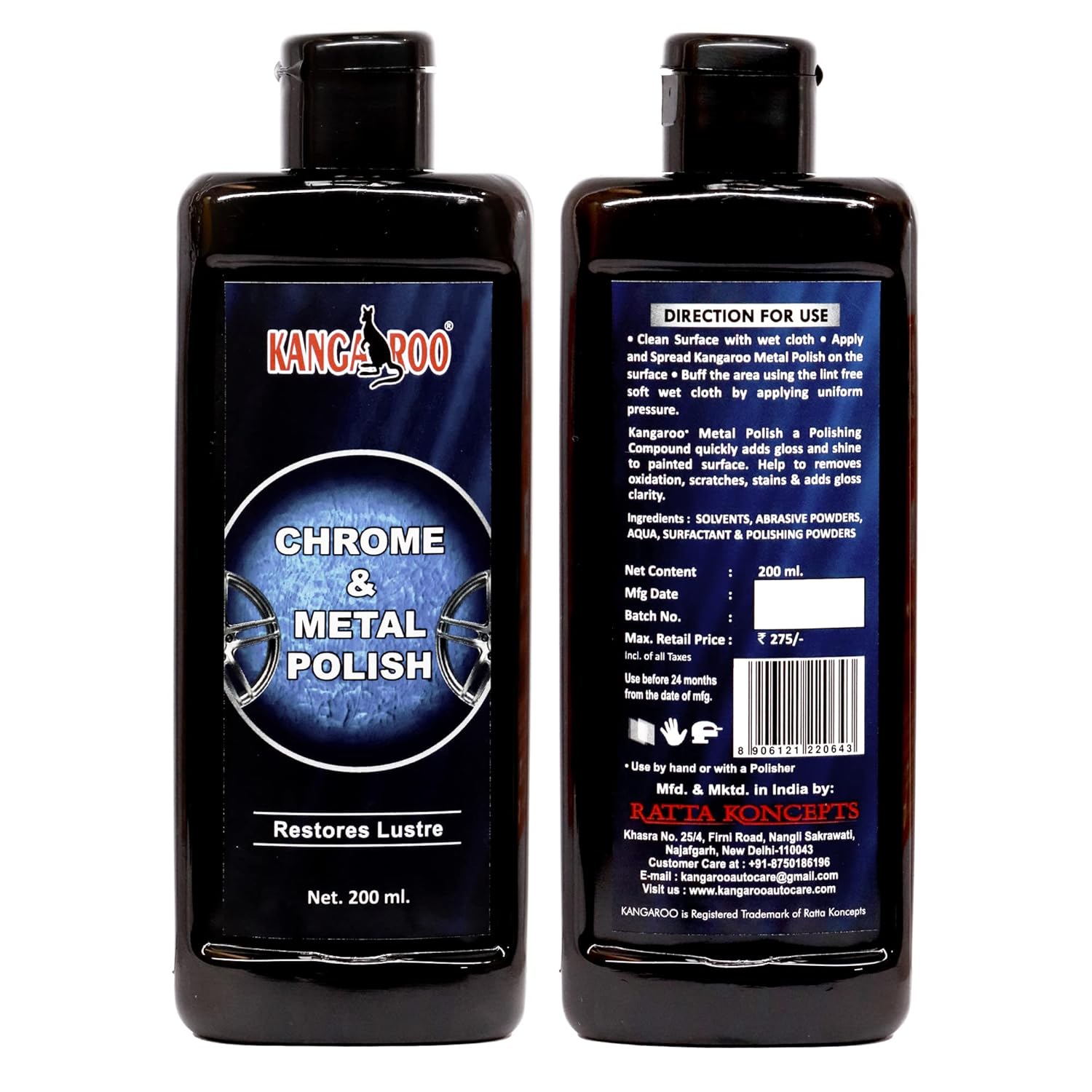 - Enhanced Metal Care: Crafted with precision, Kangaroo Chrome and Metal Polish is designed to cater to the unique needs of both cars and bikes. Revitalize chrome accents, exhaust pipes, metal panels, and more with ease.