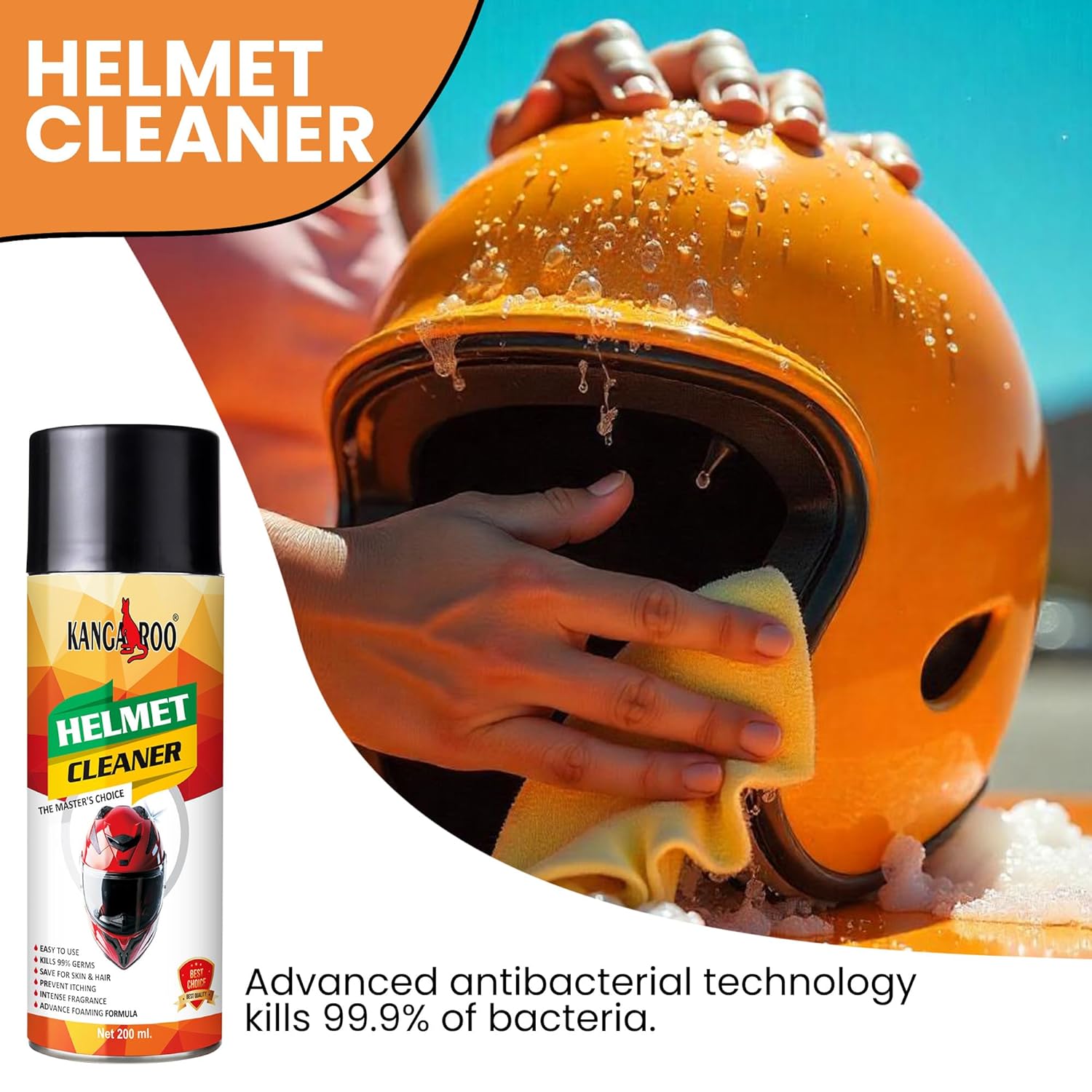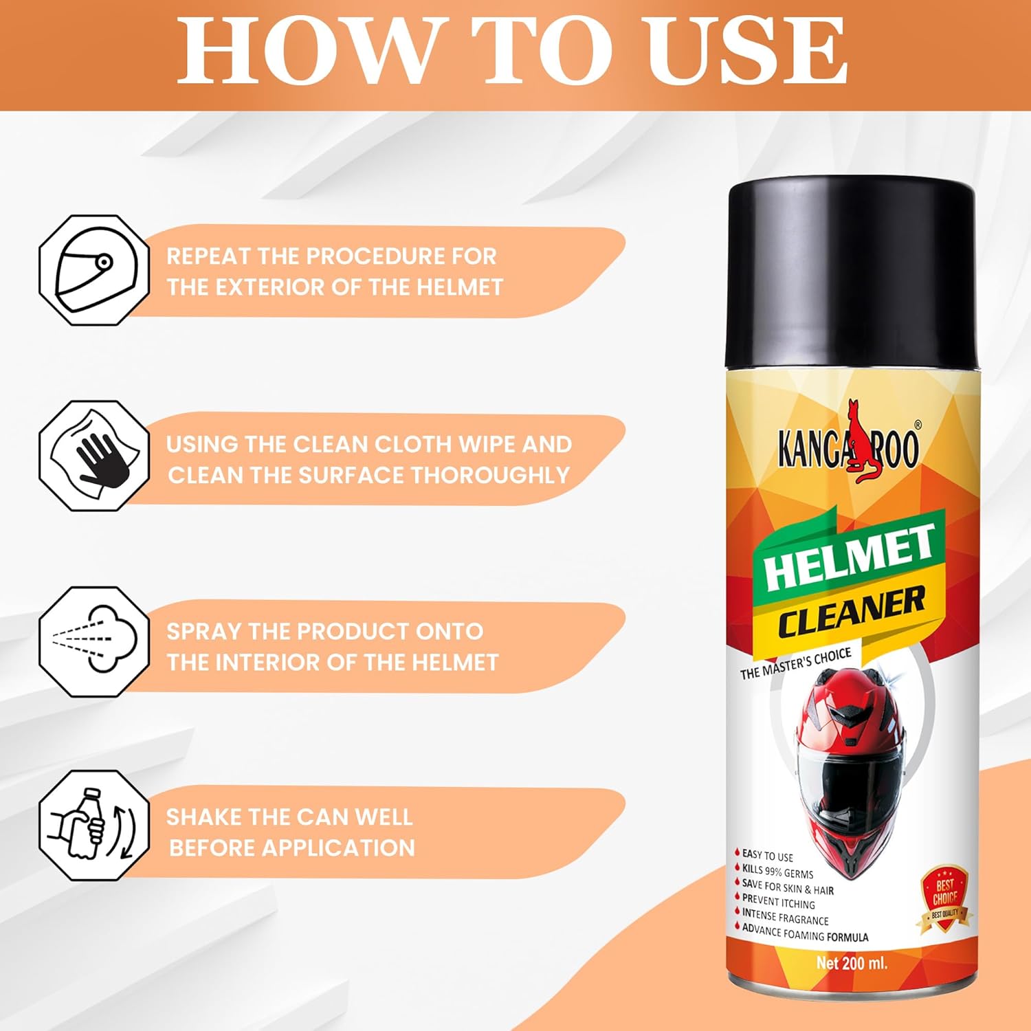Kangaroo Helmet Cleaner Spray – 200 ml Quick Dry | Anti-Bacterial Formula Foaming Helmet Cleaner Spray, Safe For Skin & Hair – Deep Cleans Helmet Interior & Removes Bad Odor | Extend Helmet Lifespan