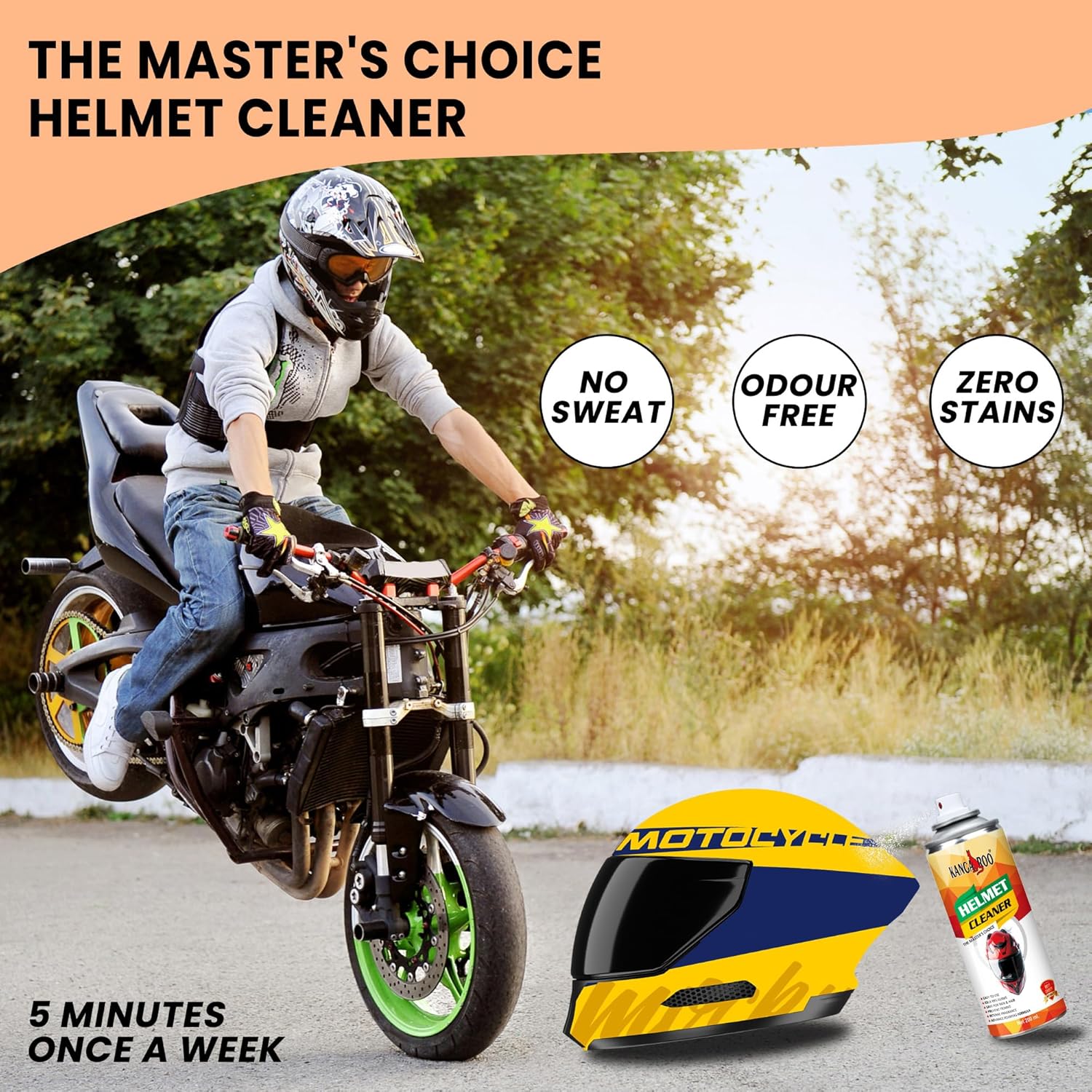Kangaroo Helmet Cleaner Spray – 400 ml Quick Dry | Anti-Bacterial Formula Foaming Helmet Cleaner Spray, Safe For Skin & Hair – Deep Cleans Helmet Interior & Removes Bad Odor | Extend Helmet Lifespan