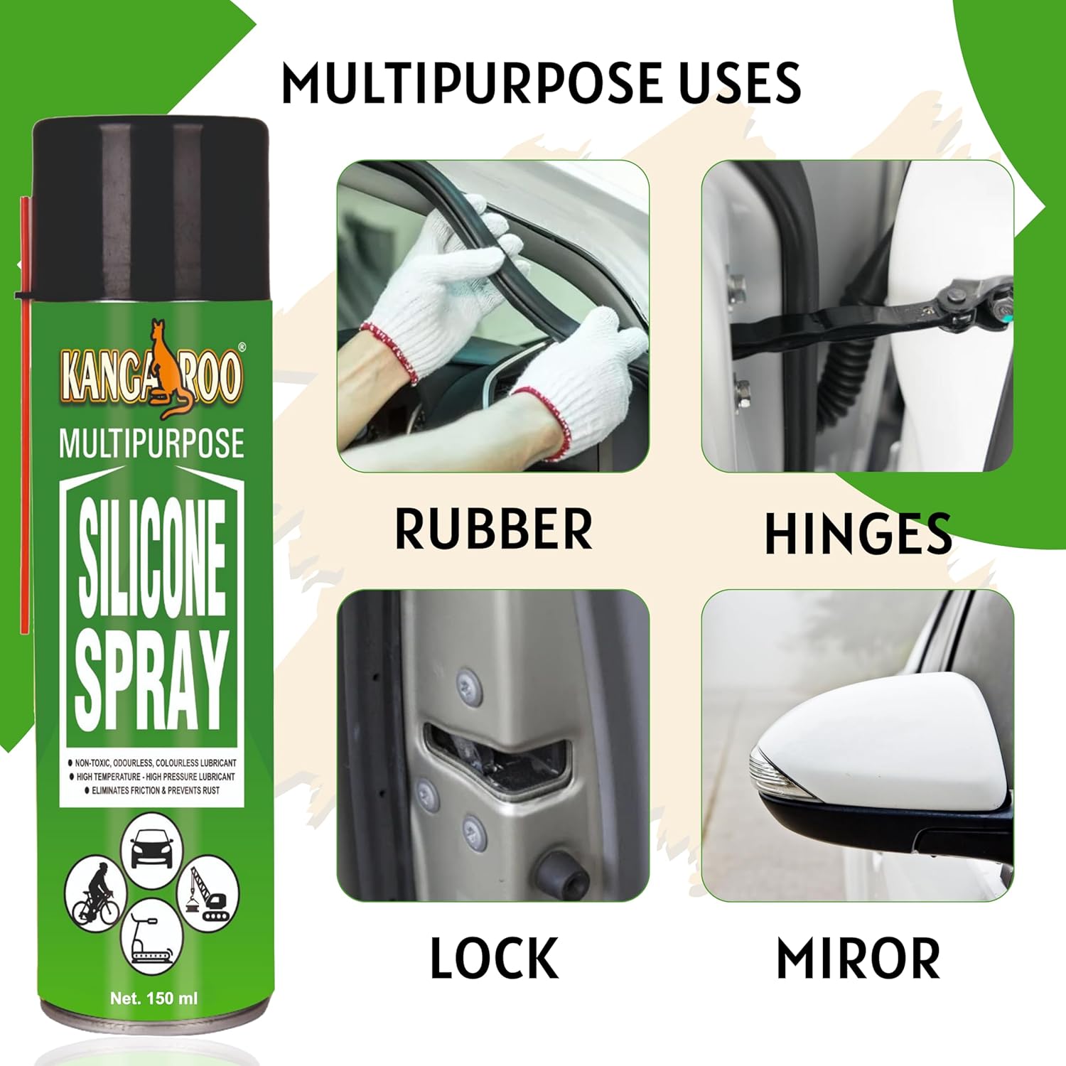 Kangaroo® Multipurpose Silicone Spray 150ml Each | Odourless, Non-Toxic Lubricant | Protects Rubber, Plastic, Metal & Vinyl | Prevents Rust, Eliminates Friction, High-Temperature (150 ML PACK 2)