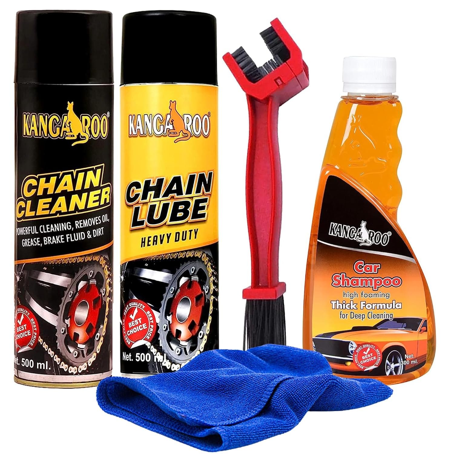 Kangaroo Chain Care Kit – Lube & Cleaner 500ml + Brush + Bike Shampoo 300ml