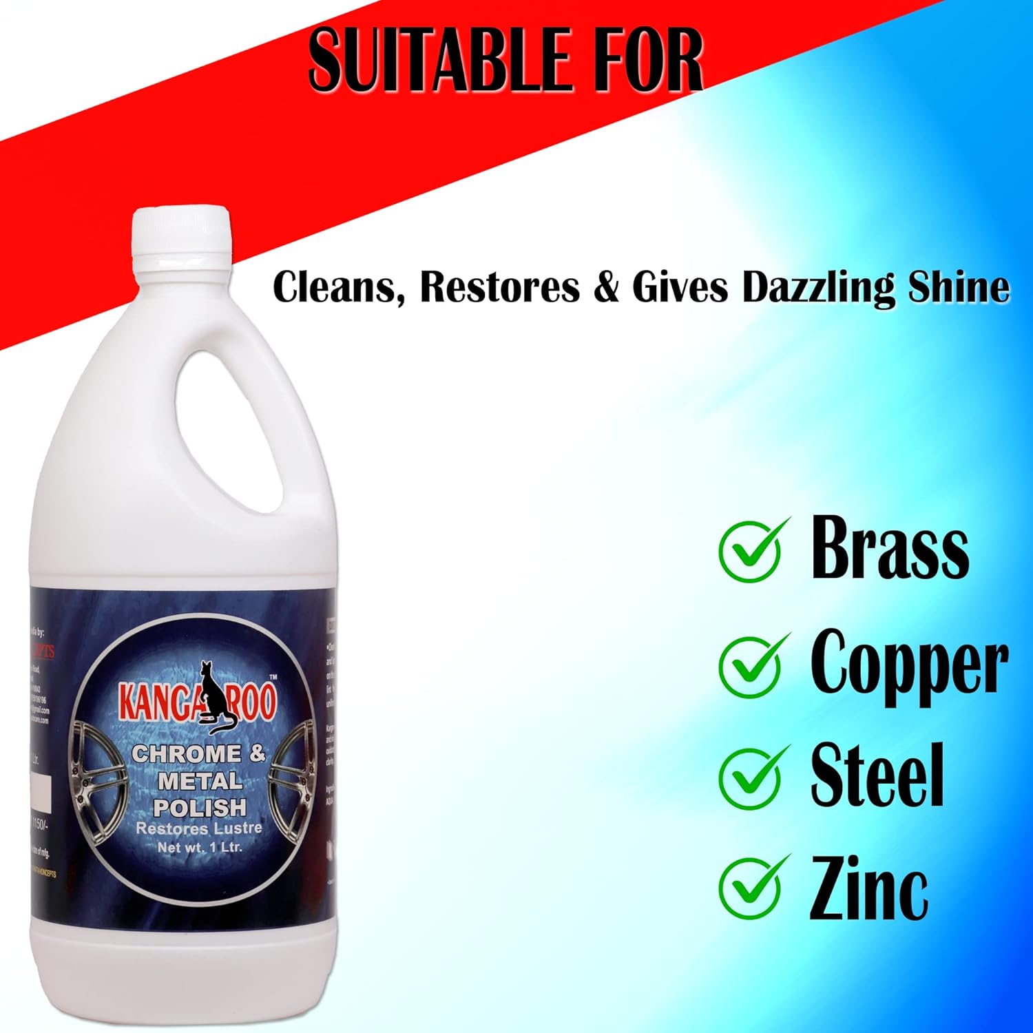 Kangaroo® Chrome and Metal Polish 1 Ltr For Chrome, Copper, Brass, Bronze, Gold, Nickel and Stainless Steel. All Metal Cleaner, Polisher and Protectant. Removes oxidation and discoloration. (1 Litre)