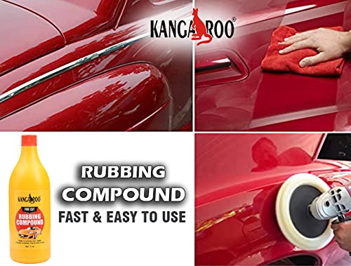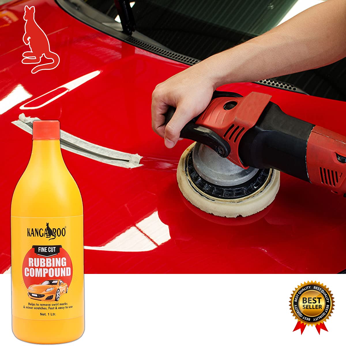 KANGAROO Wax Fine Cut Rubbing Compound (Heavy Cut 2) Scratch Remover, Paint Defect Hider And Oxidation From Cars, Bike, Motorbikes | No Scratches No Swirls (1 Litre), Yellow