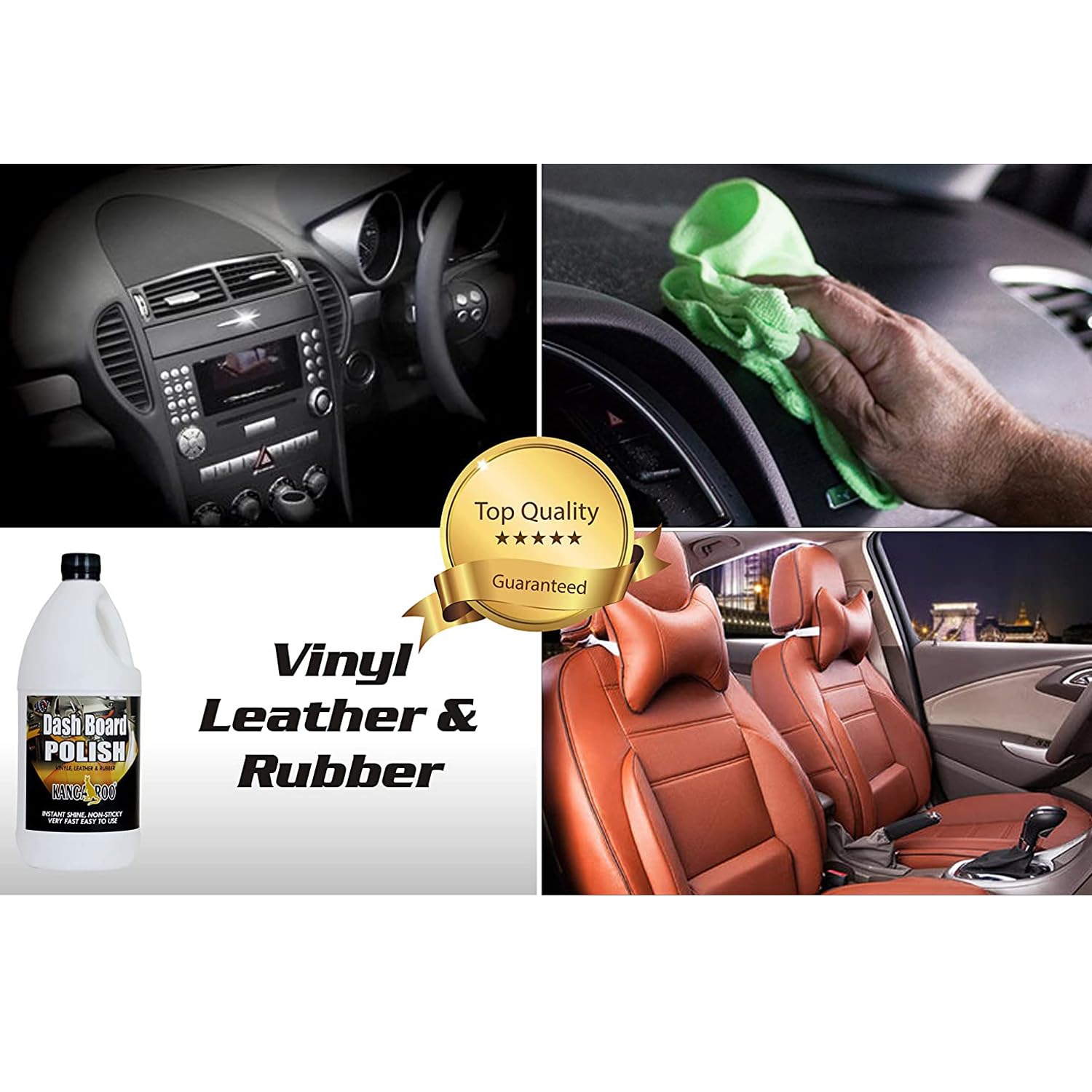 Kangaroo® Dashboard Shiner (1 liter) Car Dashboard Polish with “FREE [1 Microfiber Cloth + 1 Foam Applicators] | Car Polish for Interior Plastic, Leather, Vinyl & Rubber | High Shine & Protection
