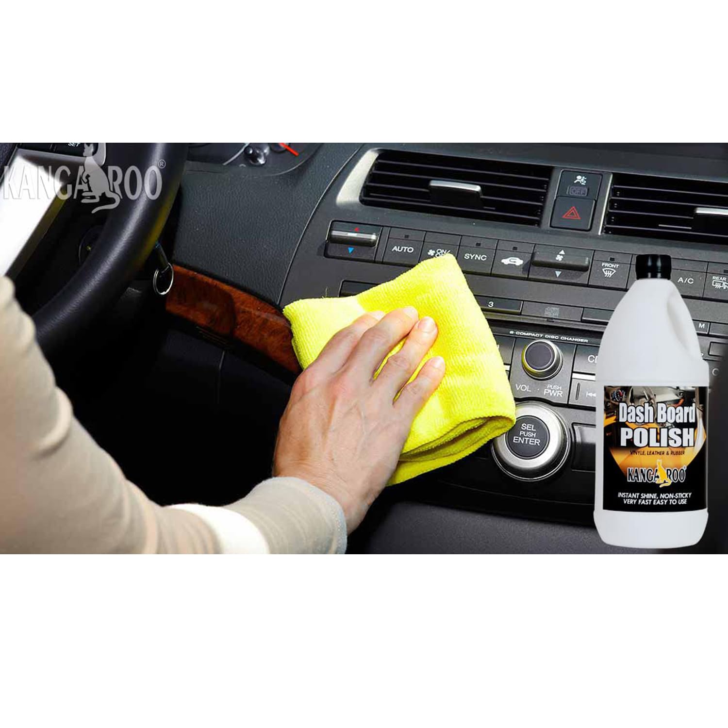Kangaroo Dashboard Polish Kit 1 Litre with Foam Applicator and Microfibre Cloth, Non-Sticky Interior Cleaner for Car Vinyl, Leather, Rubber Surfaces, 1000 ml