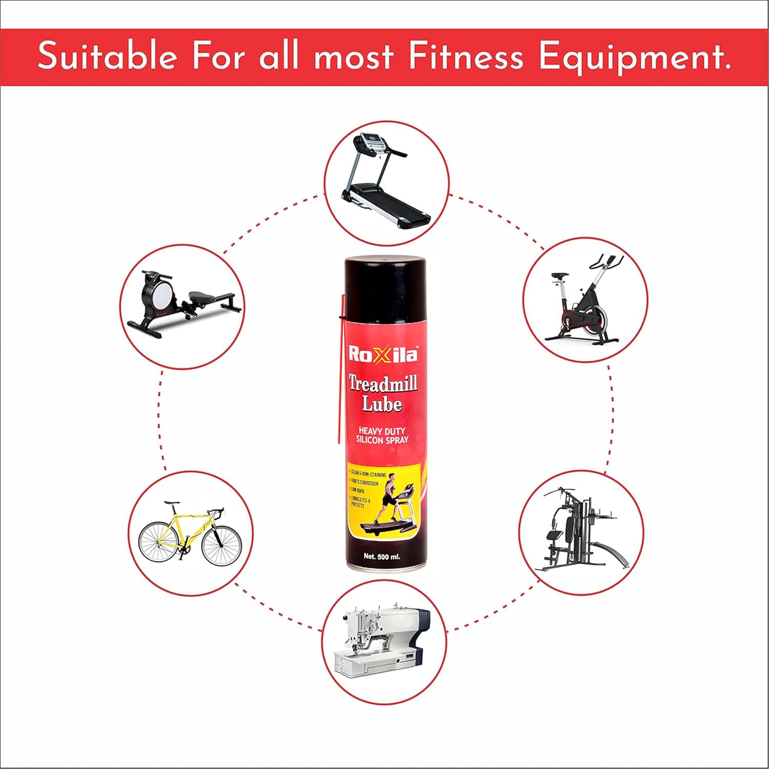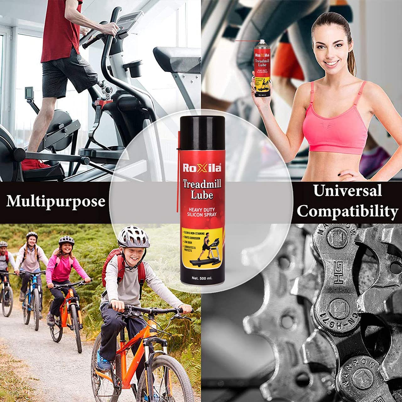 - Roxila Treadmill Lubricant Spray is made with 100% pure, high viscosity silicone oil to deliver maximum performance and protection. This heavy-duty lubricant reduces friction, prevents belt wear, and keeps your treadmill running smooth and quiet. Key Benefits: Reduces Noise & Friction: Minimizes belt drag, overheating, and motor strain. Extends Belt & Motor Life: Protects against dryness, cracking, and costly repairs. Easy-to-Use Spray Dispenser: Precision nozzle ensures quick, mess-free application. Universal Compatibility: Works with all treadmill brands – home, gym, and commercial. Premium Quality Silicone: Long-lasting lubrication that won’t evaporate or harm equipment.