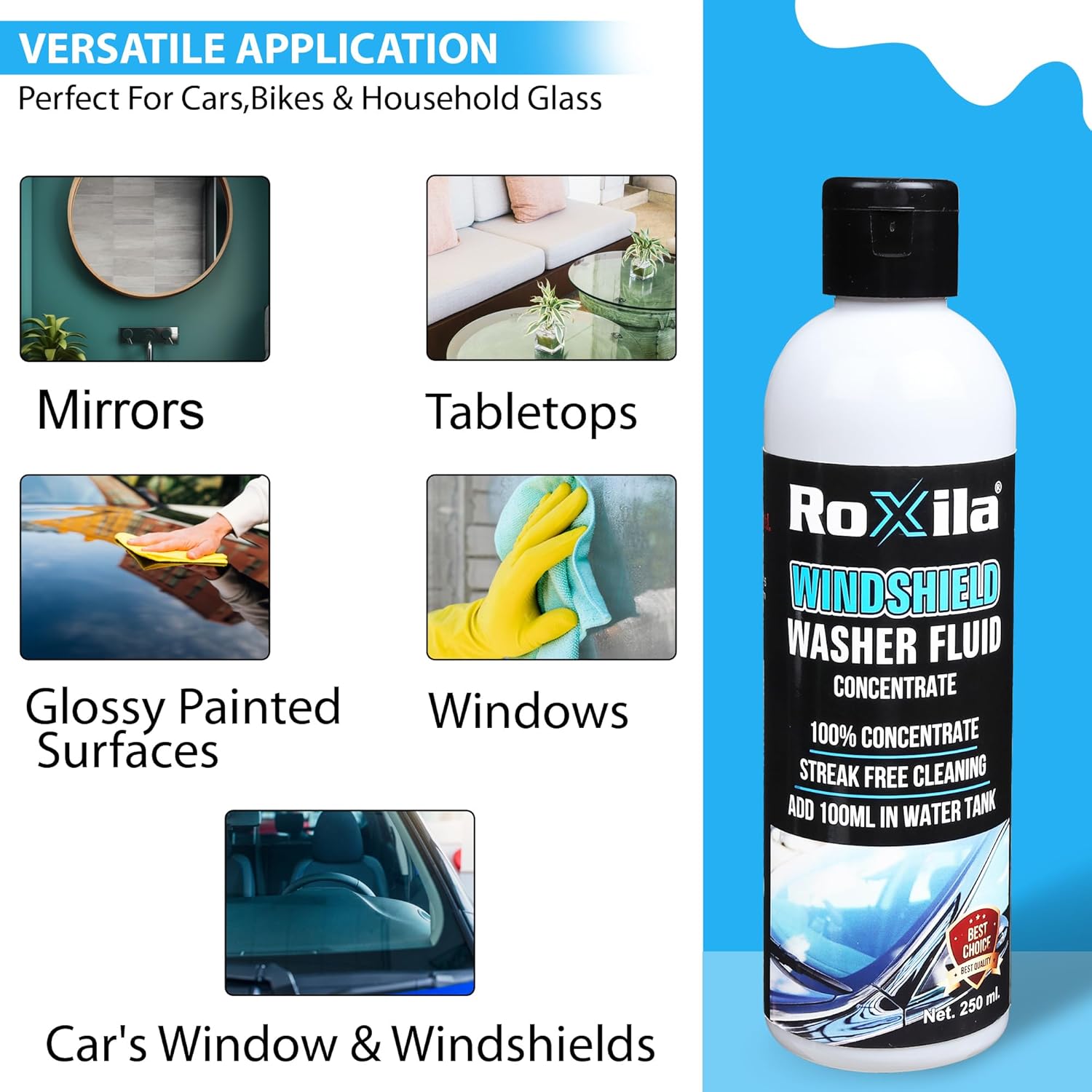 Windshield Washer Fluid for Car (250 ml) with Microfiber Cloth – Car Windshield Cleaner Concentrate Streak-Free Cleaning Lubricates Glass Cleaner Wiper, Prevents Scratches