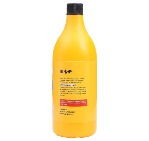 Restore your vehicle's finish to its original luster with Kangaroo® 1 Step Extra Shine Rubbing Compound. This 1-litre bottle of high-quality rubbing compound is specially formulated to remove minor scratches, swirls, oxidation, paint defects, and other imperfections from cars, bikes, and motorbikes.